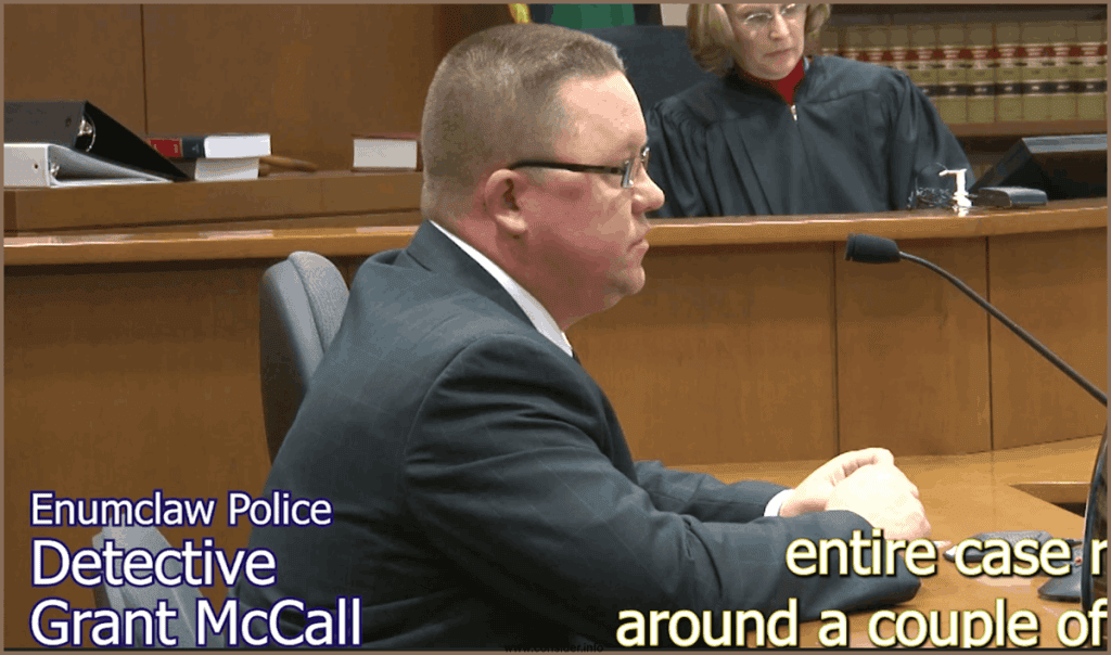 Defective Detective Grant McCall’s relentless lying, contradictions, and frame-up activities. All King County Prosecutor and Judge approved!!