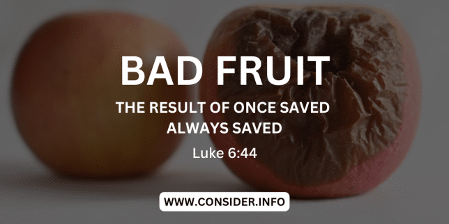 Bad Fruit Text Bad Fruit Each tree is recognized by its own fruit. People do not pick figs from thorn bushes, or grapes from briers. (Luke 6:44) Jesus spoke clearly He taught them many things by parables, and in his…