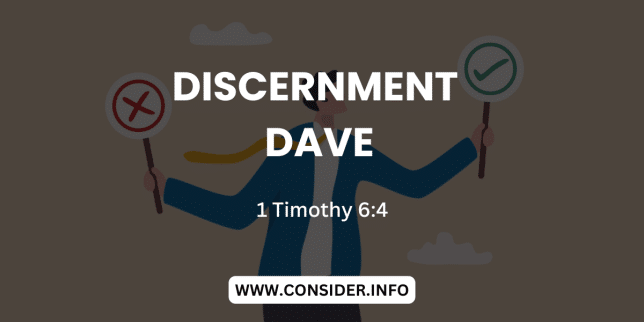 Discernment Dave Text Discernment Dave …he is conceited and understands nothing. He has an unhealthy interest in controversies and quarrels about words that result in envy, strife, malicious talk, evil suspicions. 1 Timothy 6:4 Experts on the errors of…