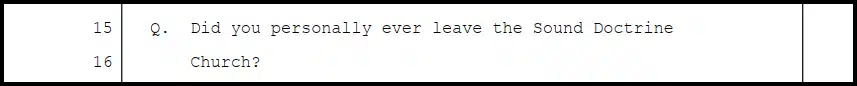 Prosecutor Jason Simmons “So, did you ever leave Sound Doctrine Church?”